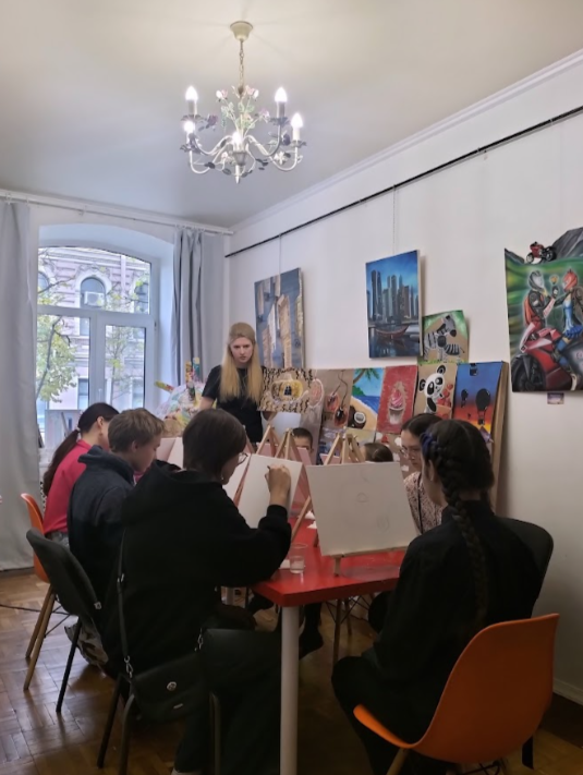 Здесь же, в студии, по шагам создавали интерьерную картину вместе с художницей Дариной. У каждого получилась неповторимая яркая работа!