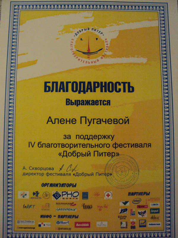 В силу специфики моей основной работы (event-manager) мне бы также хотелось помочь фонду в организации некоммерческих мероприятий. Чем я и буду заниматься с огромным удовольствием."