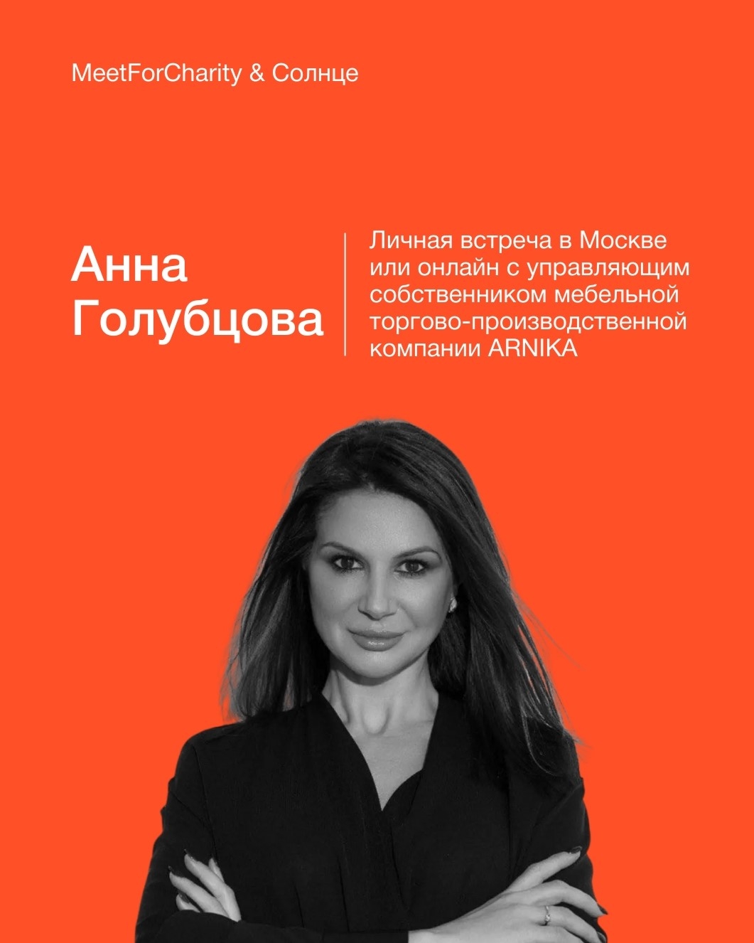 У вас есть замечательная возможность встретиться лично или онлайн с Анной Голубцовой и помочь подопечным детям нашего Благотворительного фонда "Солнце"!