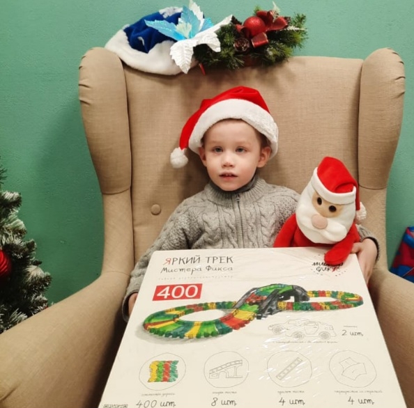 сирота, живет с бабушкой. Очень просит у Деда Мороз трек с машинками