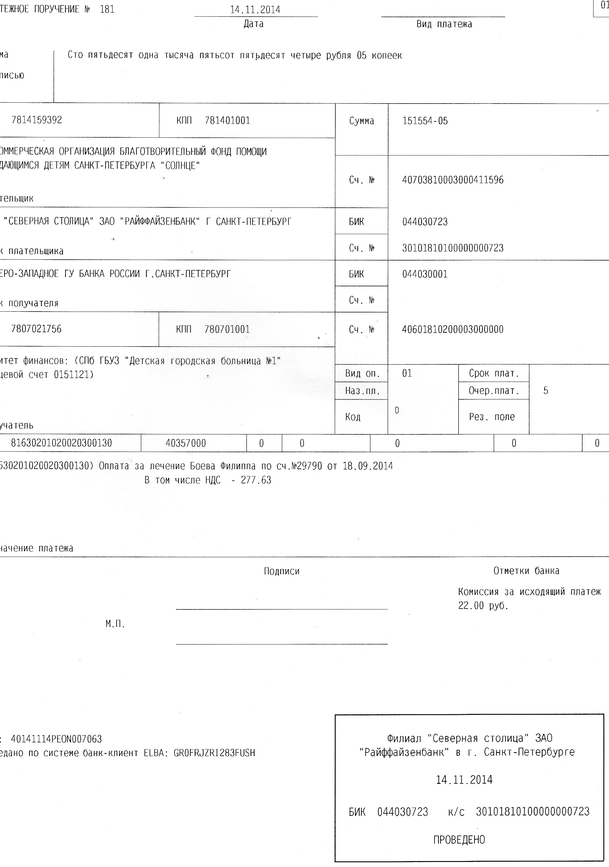 Филиппа успешно прооперировали в Детской городской больнице №1, Санкт-Петербург, в сентябре 2014 года.