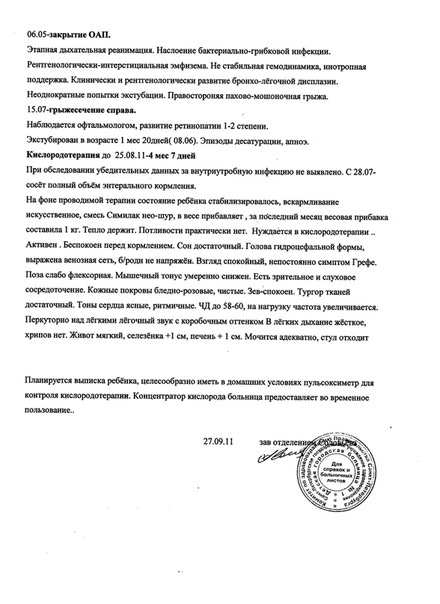 В марте, через полгода после выписки из больницы, маленького Ваню привозили из дома - из Сосново - на обследование. Мы встретились с ними, Ванечка подрос, но очень худенький. Проверили сердце - все хорошо, потом Ваня был у офтальмолога. Через месяц Ванечка приедет к пульмонологу. Аппарат пока остается у малыша. Мы передали Ванечке несколько пачек памперсов, другой помощи родители не попросили. Всем, кто переживал и переживает за Ваню, мама попросила передать пожелания здоровья и низкий поклон за ВАШУ помошь!