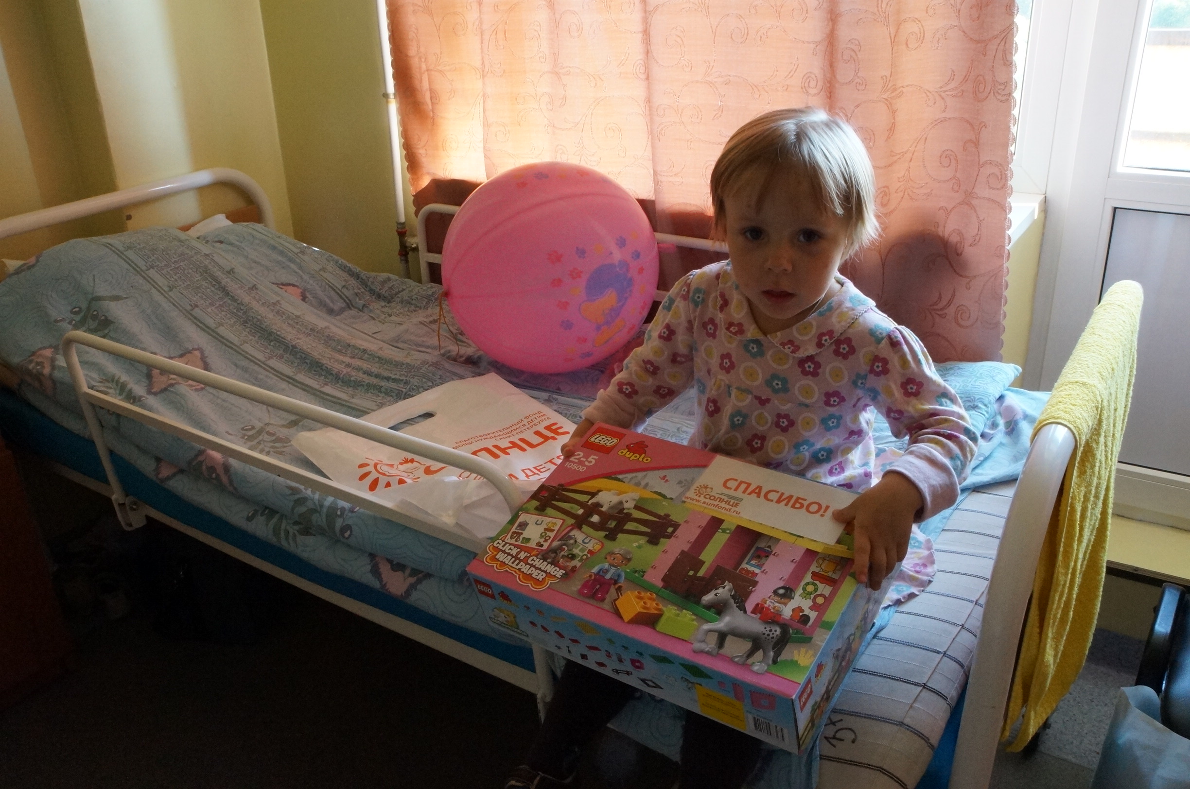 Навестили Ксюшу в больнице, она чувствует себя хорошо и очень обрадовалась подарку.