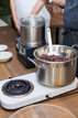 Дизайнер Елена Бадмаева, ее сыном Арсением и шеф-повар ресторана Barbaresko Константин Брук испекли песочное печенье с черникой и белым шоколадом